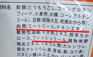 とうもろこしや小麦は当たり前に使われ、挙句主原料の含有量さえ非表示。