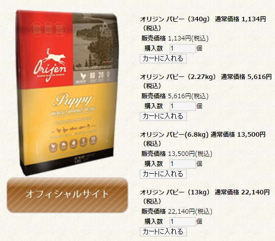 オリジンドッグフードでは始めて購入する人に向けて少量サイズでのお試し販売もしています。内容量は340gで価格が1134円(税込み)。小型犬だと一週間分ほどの量です。種類が豊富にあり同じ内容量でも1242円の物もあります。その差は僅か92円。まずは愛犬の口に合うのか?それだけを見たいならこの少量サイズ...
